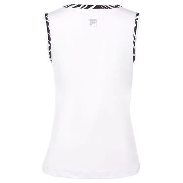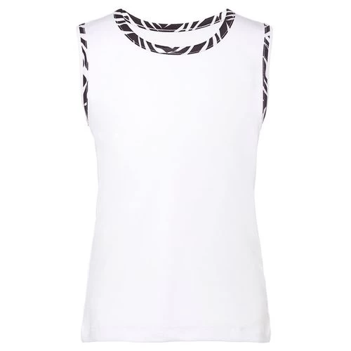 The Fila girls fullback tank made of premium plus jersey has zebra print trim detail at the neck and armholes. For a complete look pair it with the Fila girls Tiered skirt (TG018397-002).