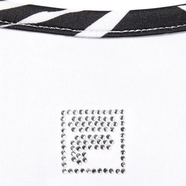 This Fila Girls’ short sleeve top adds just the right amount of sass while remaining versatile with zebra print accent piping on the neck and sleeves and a rhinestone Fila logo on the back. Made with moisture-wicking, anti-odor fabric containing 50 UPF protection.