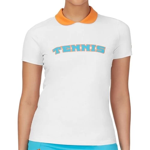 Break your opponent’s serve while looking fresh and feminine in the Fila Groundbreaker Collection. The Groundbreaker short sleeve polo combines preppy and casual with its color contrast scallop collar and varsity lettering design. Made with anti-odor, moisture-wicking 50 UV fabric.