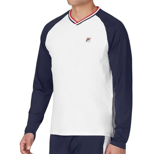 Never go out of style in the classic cuts and crisp colors of the Fila Essentials Heritage Collection. The Fila Essentials H long sleeve has a tricolor crew neck, mesh side inserts, and color contrast sleeves. Made with moisture-wicking, anti-odor 50 UV fabric.