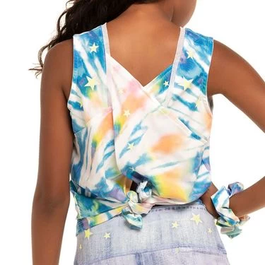 Get your game on and play in the Lucky in Love Novelty Girls All Stars tie tank, which features rainbow tie-dye, a tie-back, and a graphic star print. Made with technical fabric to wick sweat away for optimal comfort on the court.