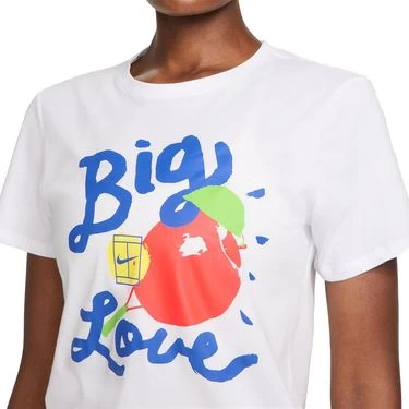 Take your game and style to new heights in the bright colors and unique prints of the Nike Women’s Fall 2023 Collection. The Nike Dri Fit Graphic Tee Shirt features a relaxed fit and a full front graphic design inspired by New York City. Made with Dri-Fit technology for optimal breathability and moisture wicking.