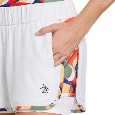 Strut your style on the courts this spring in the classic silhouettes and retro printed designs of the Penguin Women’s Spring 2023 Collection. The Penguin Abstract Printed Binding Short features an elastic waistband, retro printed binding, and built-in ball shorts. Made with stretchy, moisture-wicking fabric.