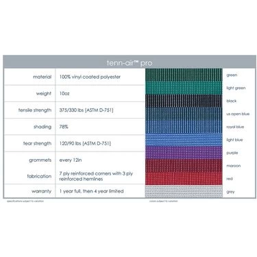 - 7-ply reinforced corners and 3-ply reinforced hems with built-in grommets every 12 inches