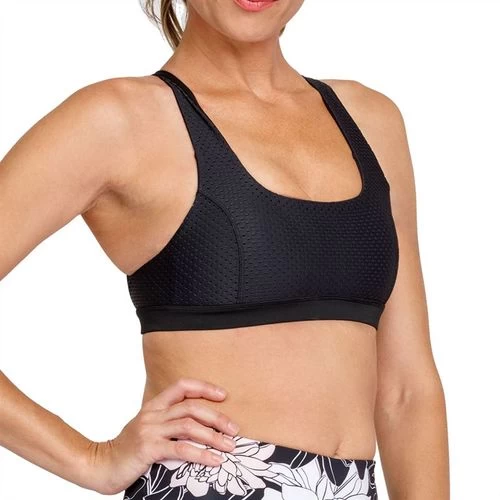 Add style and support to any Tail tennis outfit with your new Tail sports bra. The Tail Core Criss Cross Athleisure Bra has multiple straps that cross in back, oval mesh overlay, and is made with soft compression knit fabric for comfort and support.